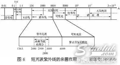配液水中的磷酸根離子、硫酸根離子和較高硬度促進微生物生長,最好的配液用水是去離子水。電磁波在純水中穿透度深,短光波紫外線具有較強的殺菌能力,如圖6所示[11]。故可用紫外線、高能電子束或超聲波照射滅菌,特別是在配液用水中含有較多微生物時。